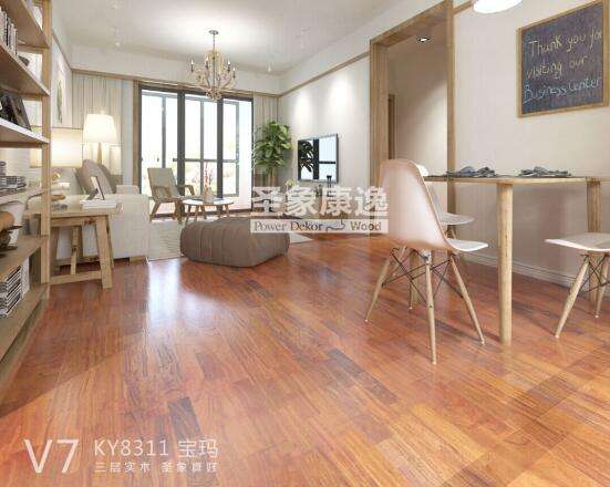 作为三层实木地板行业的领军者,圣象三层实木地板眼光独到的选择了乌金木【学名赛鞋木豆、拉丁文名(Paraberlinia bifoliolata)】作为V7系列“KY8311-宝玛”的原材料,木纹中天然的金色和
