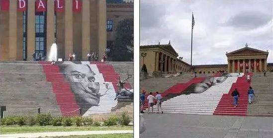 前,台阶上是西班牙超现实主义艺术家萨尔瓦多?达利(Salvador Dali)标志性的面孔。史泰龙曾经在风靡一时的影片《洛奇(Rocky)》中跑上台阶。