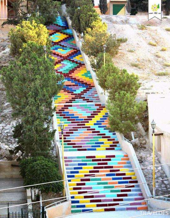 这是由一个建筑工作室的师生在2013年创造出的叙利亚最长彩色阶梯,取名为“Jood”,意在传达“用景观创造出爱与和平的希望。”