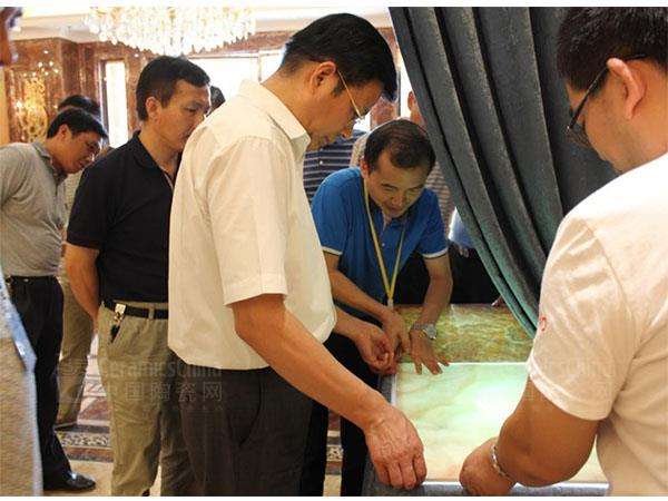 在对展厅、生产车间的参观过程中,高副市长对欧神诺宝玉系列产品产生了浓厚的兴趣。通过介绍得知,欧神诺的玉质产品是全球首创,注入了非常多的独有工艺,比如IC芯片技术、高温延时慢烧等,加上装修效果极佳,一度引起“非玉不豪宅”的装修风潮。