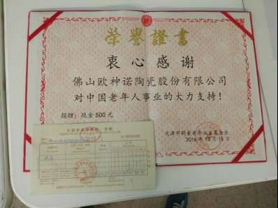 欧神诺陶瓷在企业发展过程始终不忘回馈社会,积极承担社会责任。据悉,欧神诺陶瓷每年都会以实际行动投入公益事业。