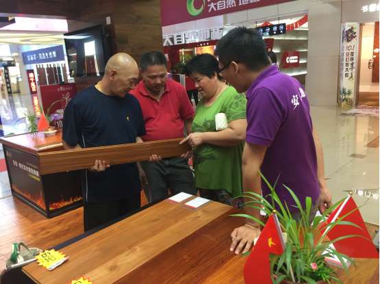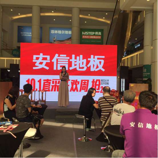 安信地板上海分公司负责人李孟俊总经理亲临每场活动现场并上台致辞,向在场的消费者介绍此次门店活动,十一期间,全上海38家门店统一开展大促销活动,消费者在上海的任何一家安信地板专卖店都可享受工厂团购价,还有丰厚好礼赠送。然后李总向现场的消费者介绍特色产品——桃花心木,桃花心木是相对名贵的木材,并讲解了桃花心木的卖点及其在家庭装修中的运用。最后李总为当天购买安信地板的客户抽奖品,奖品分为现金不等的红包、花梨木椅子、地垫等,掀起了活动的高潮。