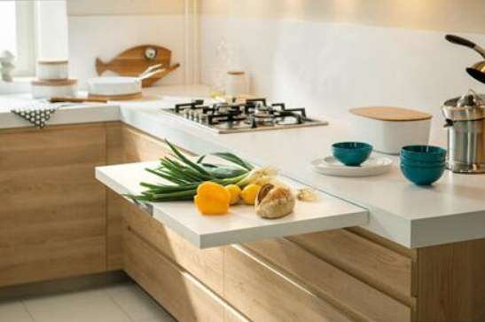 抽拉式台面还可以快速变成小砧板,切菜摆放均可,让厨房的空间进一步扩充。