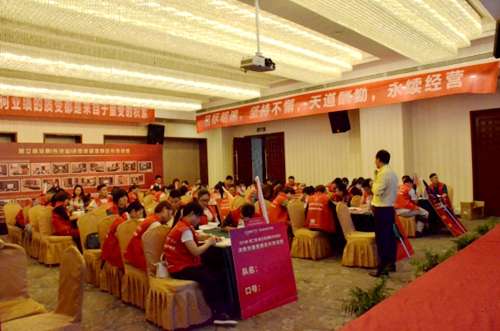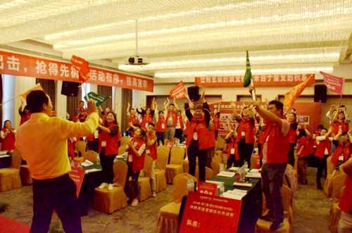 现场多组经销商团队在刘老师的带领下,从娱乐中学习,学习中娱乐,现场气氛愉悦而活跃,激励学员们能够从培训中学到的知识运用到实战中,提高团队的凝聚力,把现场的互动气氛推向高潮!
