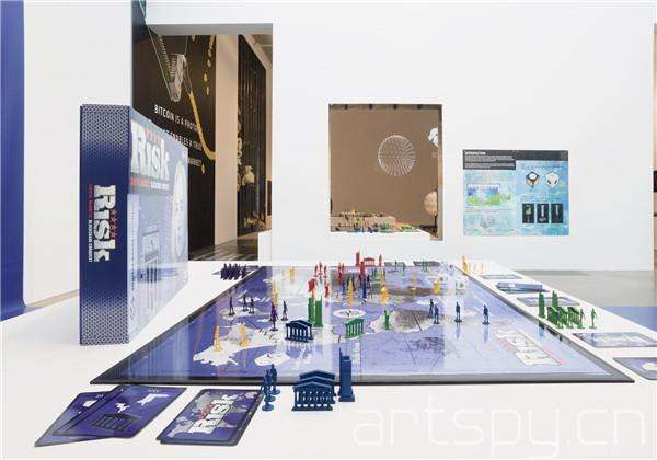在这场展览中,西蒙?丹尼(Simon Denny)将利用三个不一样的平台来着重表现三间公司在对块环链的使用上的差异,以及它们所基于的政治及意识形态上的差别。它们的美学环境与地缘政治生态系统通过一个全球化的图表、一个由不同的电脑机箱款式及其它雕塑化信息图组成的群落得到了想象。展览描绘了这场全球化的治理设计游戏中的神话、梦想、赢家与失败者,展出作品在形式上则借鉴了竞技游戏的硬件。
