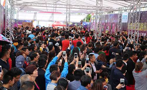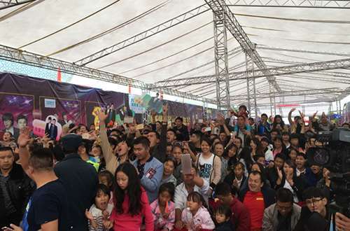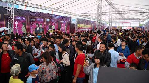 下午14点许,万众期待的水木年华在粉丝的簇拥中走上澳斯曼卫浴星际舞台,作为创立中国经典人文民谣组合的清华才子,被大理热情的消费者所感染,在现场大展歌喉,他们以其特有的一副颇具穿透力的歌喉走心演绎着最励志经典单曲《世界上最美的花》、《一生有你》等经典歌曲,台下观众席瞬间沸腾,现场粉丝们不约而同地跟着节奏唱了起来,彷如一场大型的歌友会。