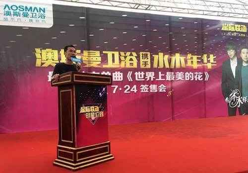 为支持澳斯曼卫浴的节水公益行动,水木年华公开表示:能够以“节水明星大使”的身份与澳斯曼卫浴一起致力传播节水、低碳的生活理念,向大理市民倡导绿色健康生活,是一件既美妙又有实在意义的事情,并现场呼吁“生活节水从自我做起,节水家装从选择澳斯曼卫浴做起”!