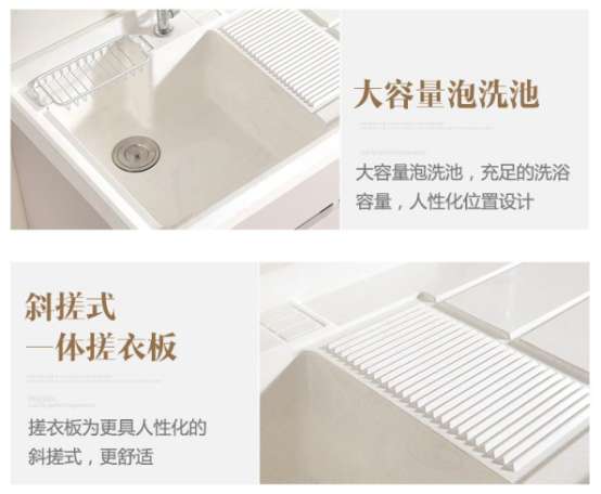 澳斯曼洗衣柜采用的是金刚石台盆,绿色环保,硬度高,不变形,不褪色。同时柜体高度符合人体工程学设计,与传统洗衣服腰酸说