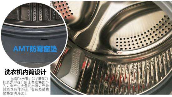 从洗衣机内筒来看,128道弹力筋及柔形提升筋上有密集的小孔,顺时针旋转时,会产生大量的水流,充分浸湿及拍打衣物,有效降低磨损提高洗净比。小孔为双面冲孔工艺,不会刮伤和勾丝衣物,有效降低衣物磨损度。