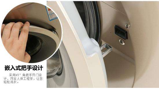 这款洗衣机采用嵌入式把手设计,更加符合用户的使用习惯。45°角把手开门设计,符合人体工程学,让您轻松洗衣。视窗门可开180°,投放衣物更加方便。