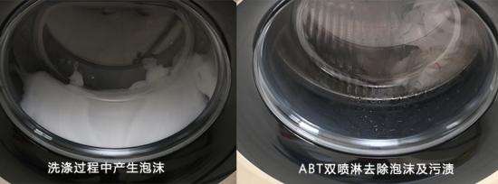 将洗衣程序设置为“混合洗”,混合洗程序分为洗涤、漂洗和脱水三个过程,整个混合洗程序耗时约一小时。除此之外,该机采用ABT双喷淋系统,在洗涤过程中有效清洗窗垫窗屏,去除洗涤的污渍和泡沫。