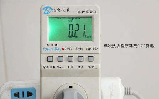 经测试可以看出,单次洗衣程序耗电量为0.21度电。粗略计算一周洗衣5次,一个月约20次。平均每月耗电量为4度电,花费约为2元。相比其它家电产品,还是非常节省的。