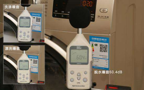 整个混合洗程序包括洗涤、漂洗和脱水三个阶段,其中洗涤时噪音为43.9dB,漂洗噪音56.9dB,脱水噪音60.4dB。(噪音测试位置为机身左前方20cm处)