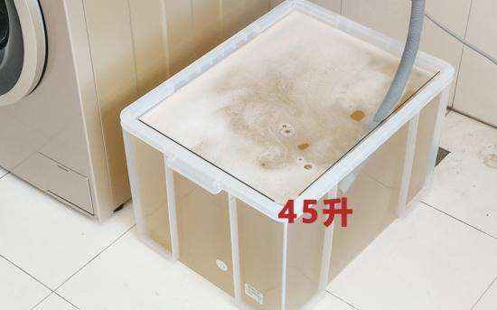 洗衣机一直以来都是用水大户,通过收集排水可以看到,混合洗程序的用水量约为45升。(洗涤T恤和配重衣物总重量约1kg,收集排水的水箱容积为45升),相比其它洗衣机用水量并不大。