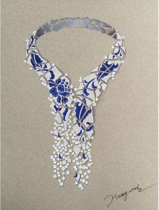 通过设计图纸,铸蜡、银版、执模、镶石、烤珐琅、抛光、电金调位等制作工艺,实现珐琅与钻石的完美融合。