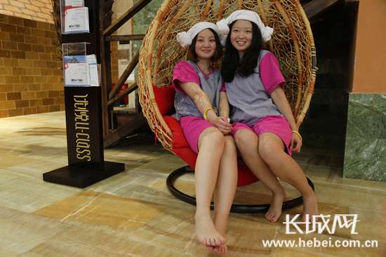 进入汗蒸房后,有的网友去体验电气石汗蒸,有的选择体验火龙浴,火浴能量房的温度高达60度,去里边十几分钟就汗流浃背了。还有的网友去冰蒸房感受一下冰火两重天的感觉,冰蒸房的温度低至0度,这可是需要很大的勇气才能体验啊!除此这外,还有盐晶化石能量屋、玉石屋、红外线窑洞、韩式大炕等多种项目供网友们选择。