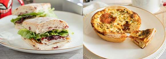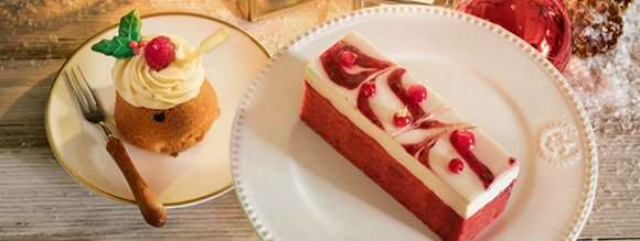 点心方面,咸点有火鸡红莓意大利软包、西班牙辣肉肠番茄干蛋批;圣诞限定中的甜点部分由红莓红丝绒蛋糕、香橙朱古力蛋糕配香橙糖浆担当。
