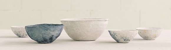 看上去并不重口且是日式冷淡风的一组碗。设计师在荷兰设计周上展示了自己的作品,一同亮相的还有同系列的吊灯和大号餐桌。设计师表示虽然来源于可循环利用的厕纸,纸浆却不赖。