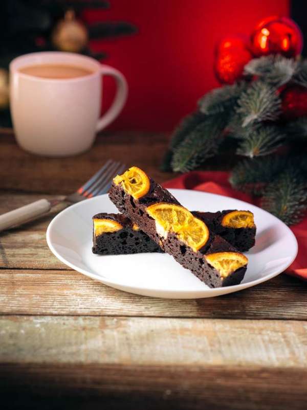 (圖四)「橙香起司布朗尼」,在布朗尼中加入奶油乳酪,外層佐以柳橙切片,果皮香氣與布朗尼微甜口感,一口咬下雙重滿足,售價70元。(圖片提供/統一星巴克)