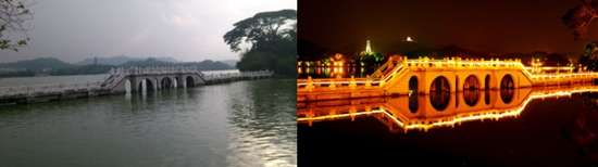 惠州西湖的夜间设计既考虑景区景点本身的特色及文化内涵,又考虑它的营造效果与整个城市夜景景观规划。通过点、线、面的灯光布局,配合周围建筑物的灯光效果,达到突出重点,兼顾一般的多元照明效果。