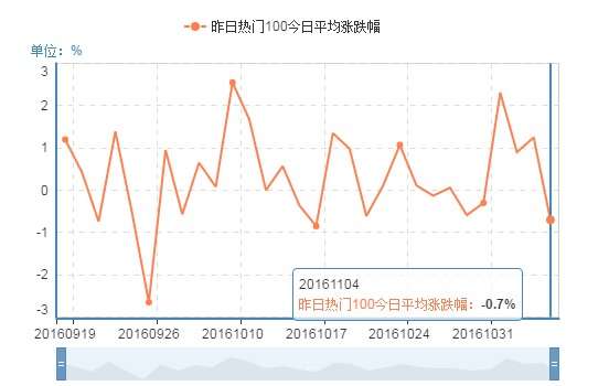 昨日前100热门股今日表现极度萎靡,表明市场情绪极度悲观,赚钱效应极差,在震荡行情中往往有绝处逢生的表现,次日上涨概率较大;