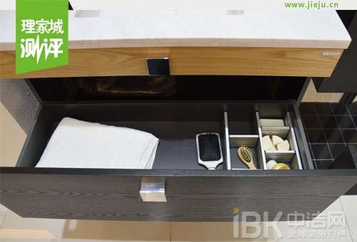 女生常有一种烦恼,发夹和皮筋是用一个丢一个,没有一个存放位置。作为一个挑剔的处女座,那更没办法忍受发夹皮筋到处乱放的情形。这款浴室柜相比以往的金柏丽雅浴室柜,多了一层可以容纳细碎物品的抽屉。中空的设计,虽然只有窄窄的一个小空间,但巧妙的分了多个隔层,适合用来收纳女生常用的首饰、皮筋、发夹等细碎物品,从此可以美美的打扮自己。