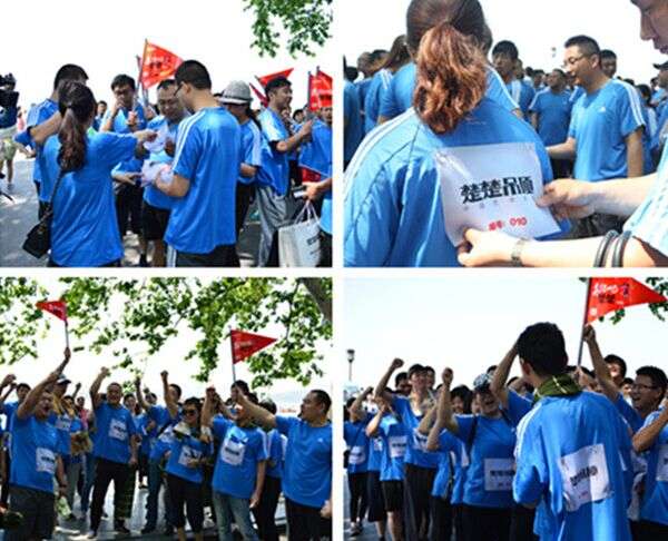 十点整,在5个小组长的带领下,近200名楚楚运动健儿鱼贯而出,欢乐开跑!