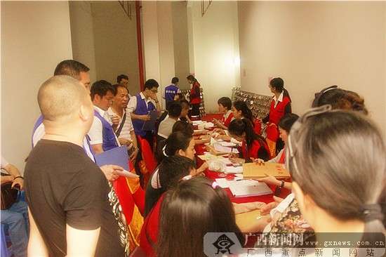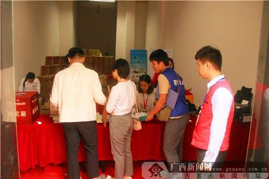 交房现场,工作人员认真服务