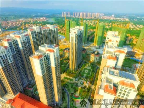 塞纳左岸已落成的楼栋实景图,可见高尔夫别墅景观