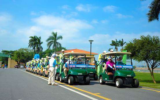 队际赛决赛日第一天,银海高尔夫的天气似乎有点深秋的感觉,气温较之前有些下降,凉意袭人。微风拂面,球员信心满满踏上了自己的“战车”,前往比赛场地。