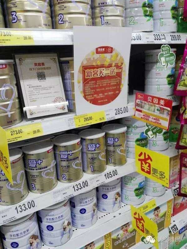 作为一家老牌奶粉企业,贝因美今年推出了爱+red,但五谷君在部分商超中并未寻觅到爱+red的身影,但贝因美金爱+以及绿爱+,和其他奶粉品牌一样,也在促销中。