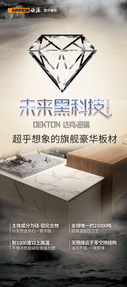 科尔缔纳的台面为天然硅铝化合物的达克密瓷,通过1100度烧结合成,硬度堪比金刚石,可耐1000度高温和明火冲击,如果将高温锅体多次直接放在科尔缔纳的台面上,也完全不用担心会留下灼痕。