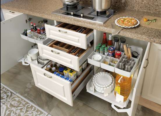 科尔缔纳的“博纳精深”收纳系统对空间收纳赋予了全新的理念,利用定制配件模块化组合、人性化设计、严格遵循空间黄金比例分割原则,按生活规律,功用规律,分类规律将众多鸡肋空间加以有效利用,有效扩充空间30%以上,真正实现厨房收纳空间高效利用,为人们解决收纳的烦恼。