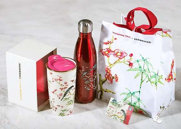 同期推出的还有 VIVIENNE TAM x STARBUCKS 联名组,融入东方意味十足的花鸟设计「Bird and Flora」图案,雀鸟、竹叶、梅花都用工笔勾勒。