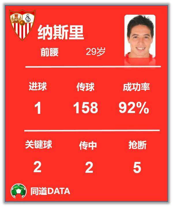 在10月19日,塞维利亚客场挑战萨格勒布迪纳摩的比赛中,纳斯里打入全场唯一的进球帮助球队全取3分。比这粒进球更让人印象深刻的是,纳斯里在本场比赛完成令人难以置信的158次传球,成功率高达92%,要知道萨格勒布迪纳摩全队的传球数也只有230次而已。此外,法国人在本场比赛还完成2次关键传球、2次传中及5次抢断。纳斯里只用了90分钟就向世界宣告了自己的强势回归,29岁的“小天鹅”一战封神。