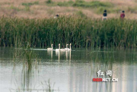 长沙市野生动植物保护协会会长周灿英介绍,“长沙不止松雅湖有小天鹅,2013年至2015年,我们连续三年都有在望城的大泽湖监测到了小天鹅,只是今年还没有发现。早在2009年的时候,摄影爱好者就在望城大泽湖首次拍到过它们的足迹。”