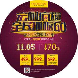 什么能让你感到愉悦?当然是购物,什么能让你感到畅爽?便宜的购物!“宏耐疯爆,全民地板”,超低折优惠让你爽不够,超豪华礼品让你领不停,全国联动,11月,宏耐带你嗨翻天!