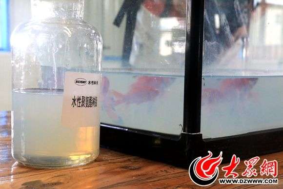 在科天集团生产车间,来自人民网、新华网、东方网等中央及省级重点网络媒体的记者们跟随工作人员的讲解,来到了干净整洁的企业生产车间,工作人员将水性高分子树脂倾倒入清澈的鱼缸中,“我们的产品不含任何有害化学物质,在水中加入水性高分子树脂对鱼儿的生存没有丝毫的危害,鱼儿依然活得十分精神。”