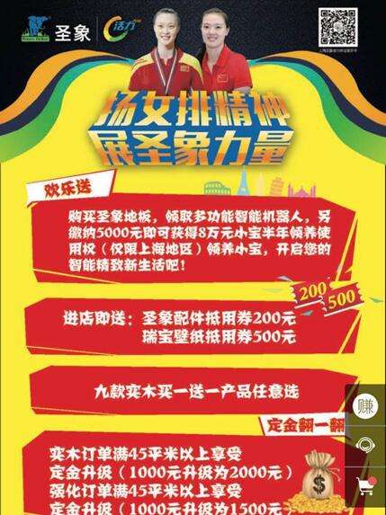 上海的消费者更是期待多多,圣象创始人翁少斌将作为上海公司重量级嘉宾与消费者面对面,现场为21位幸运消费者送出金条大奖,同时优惠豪礼不断,购地板领多功能机器人,缴纳5000元现金还能获得价值8万元的小宝半年领养使用权。此外,还有配件、壁纸抵用券,定金升级,买一送一实木产品任选等多重让利优惠,为你在这个冬天打造完美家居生活,助力家居品质升级。 值得一提的是,为了让消费者买得更开心,圣象地板还邀请了顾家家居、奥普吊顶、朗斯淋浴房、苏宁易购联动让利,居家所需,一站搞定!