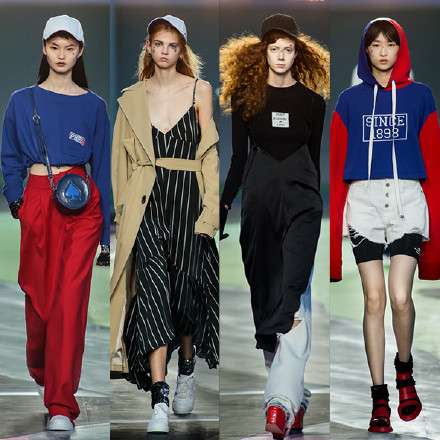抛开为了秀场效果而稍微过分了点儿的过度混搭来看,单品除了好看外,还比较实用,比如条纹吊带裙和风衣的搭配,