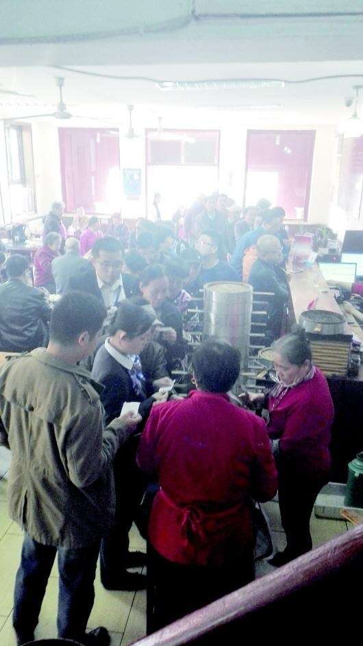 记者数了一下,大概有四十多个位置能坐人,这些位置上基本都已经有顾客在享用包子,而在记者前面,是已经排了十多个人的队伍。随着有人点好包子,记者在队伍中也缓慢向前移动。