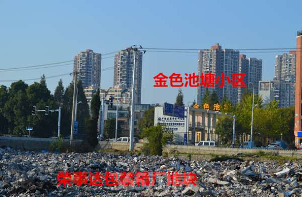 据了解,荣事达包装箱厂地块周边的金色池塘小区