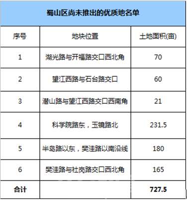地价有望突破2000万/亩 蜀山多宗宝地待卖