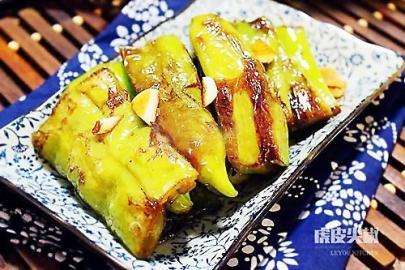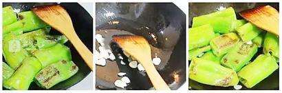 5.一边煎一边要用铲子按压,煎好一面后再翻另外一面,煎至辣椒表面出现焦斑、表面起皱,煎好后盛出备用。