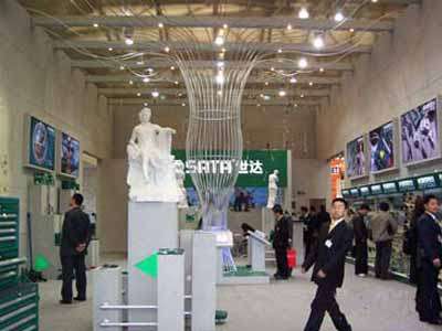 与众多品牌纯粹展示产品不同,世达首先从形式上就已先声夺人。走进会场,首先印入眼帘的就是世达展厅中高高矗立的希腊石像。象征着权威与美的石像不仅将世达行业领先的地位凸现出来,更为本来稍显冰冷的五金展注入了一股浓重的艺术气息,让人恍然置身艺术宫殿。伴随着现场悠扬的萨克斯演奏,参观者不由得放慢了脚步,慢慢地体味着世达为工具成就的极致品质。在展厅最显眼的位置,一个全身涂满银粉的