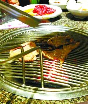 权金城与汉拿山供烧烤的品类相差无几,但是在主食的品类上数量更多一些,为了提高翻台率,权金城用的烤盘是网状的,烤肉的速度非常快但是很容易烤糊,而且很容易粘在网子上。听说权金城的南瓜粥非常有名,但是店内的服务员却告诉北京商报记者当天不供应南瓜粥。另外,权金城的蘸料是店家配好的,有一小碗蘸水,一碟子干料,顾客可以根据自己的喜好选择,送的小菜也十分清爽可口。