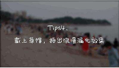 在人多拥挤的地方很容易拍成游客照,比如在海边的时候我们可以试着利用草帽的缝隙,制造阳光洒进来的漏光效果。