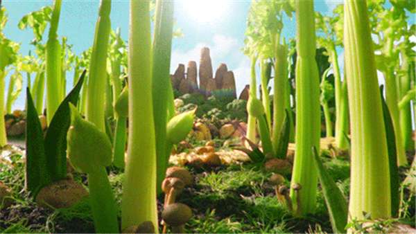 1、场景由138种食材实物搭建而成。2、除韭菜做的草原和肉做的雪山用了特效合成,其余均为实景拍摄。