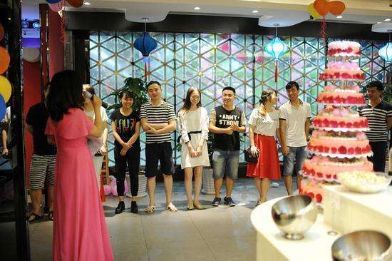 在7层蛋糕面前,30岁的何女士被感动的热泪盈眶,她告诉记者:“和男朋友今年准备九月结婚的,没想到他会在七夕前准备一场求婚,亲戚朋友都来了,不仅浪漫而且实在,在小肥羊一起吃着火锅,就像一起过日子踏踏实实。”