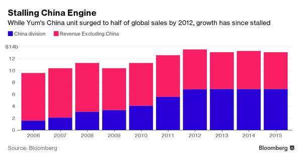 到2012年,百胜集团的中国业务激增至公司全球销售额的一半,但之后增速陷于停滞